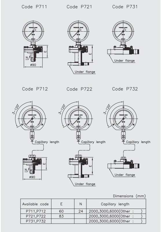 6. Bản vẽ kỹ thuật của Đồng Hồ Áp Suất Kiểu Màng P710, P720, P730